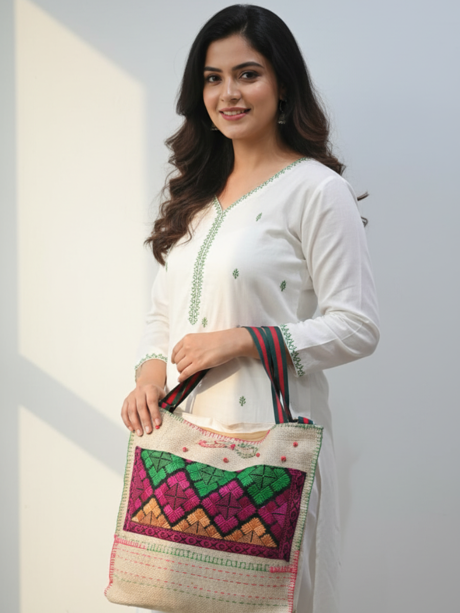 Artisan Floral Embroidered Jute Bag