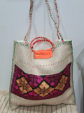 Function is seamlessly integrated with beauty: the wide, open interior accommodates all your essentials, while the artisan-braided rope handles in contrasting colors provide a comfortable, distinctive grip. The entire structure is finished with prominent, decorative running-stitch detailing, a hallmark of true handmade quality.