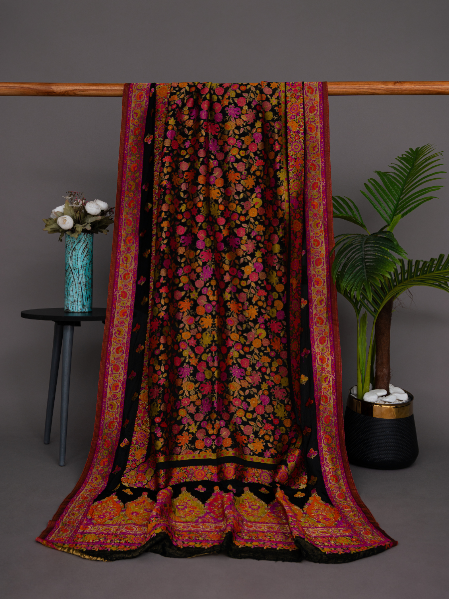 Add a touch of tradition and luxury to your wardrobe with this exquisite Kani Chiffon Shawl — a heritage piece meant to be cherished for years.