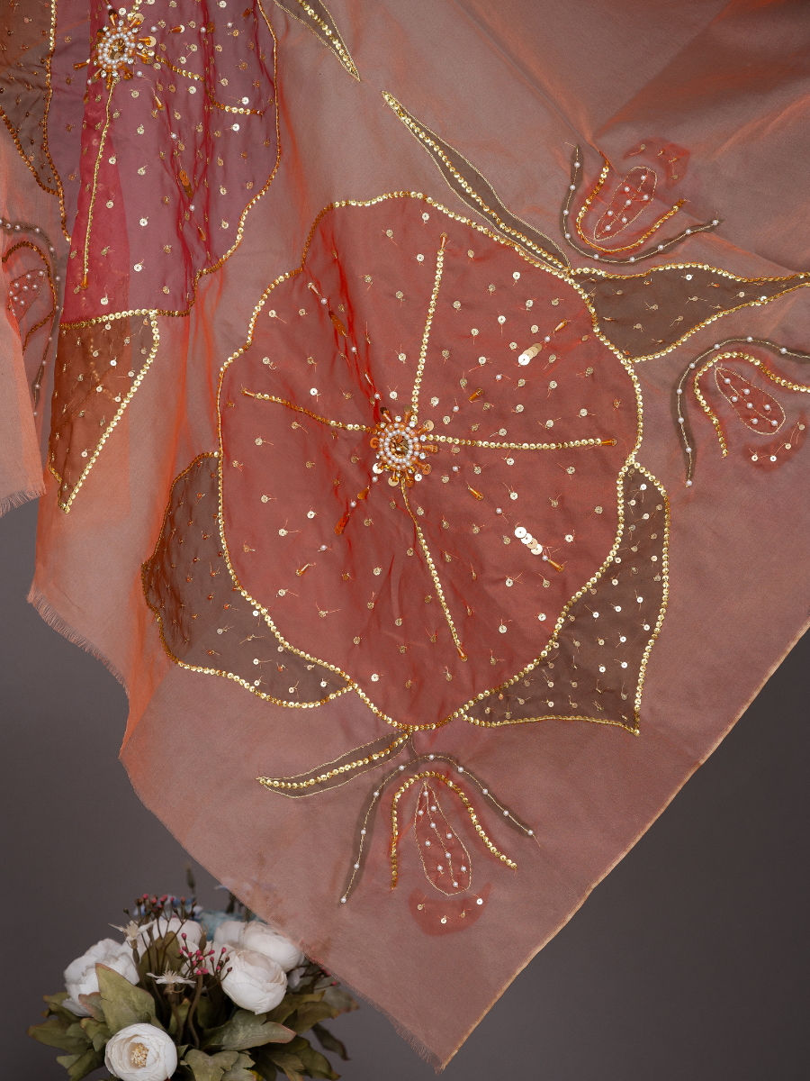 Step into refined elegance with Ever Shine’s Organza Handwork Shawl, beautifully crafted from premium sheer organza and elevated with traditional Pakistani hand embroidery. Each shawl is a celebration of heritage craftsmanship — delicately adorned with Mukesh, Gota, Tilla, Dabka, Zardozi, or fine thread embroidery, all meticulously executed by skilled artisans.