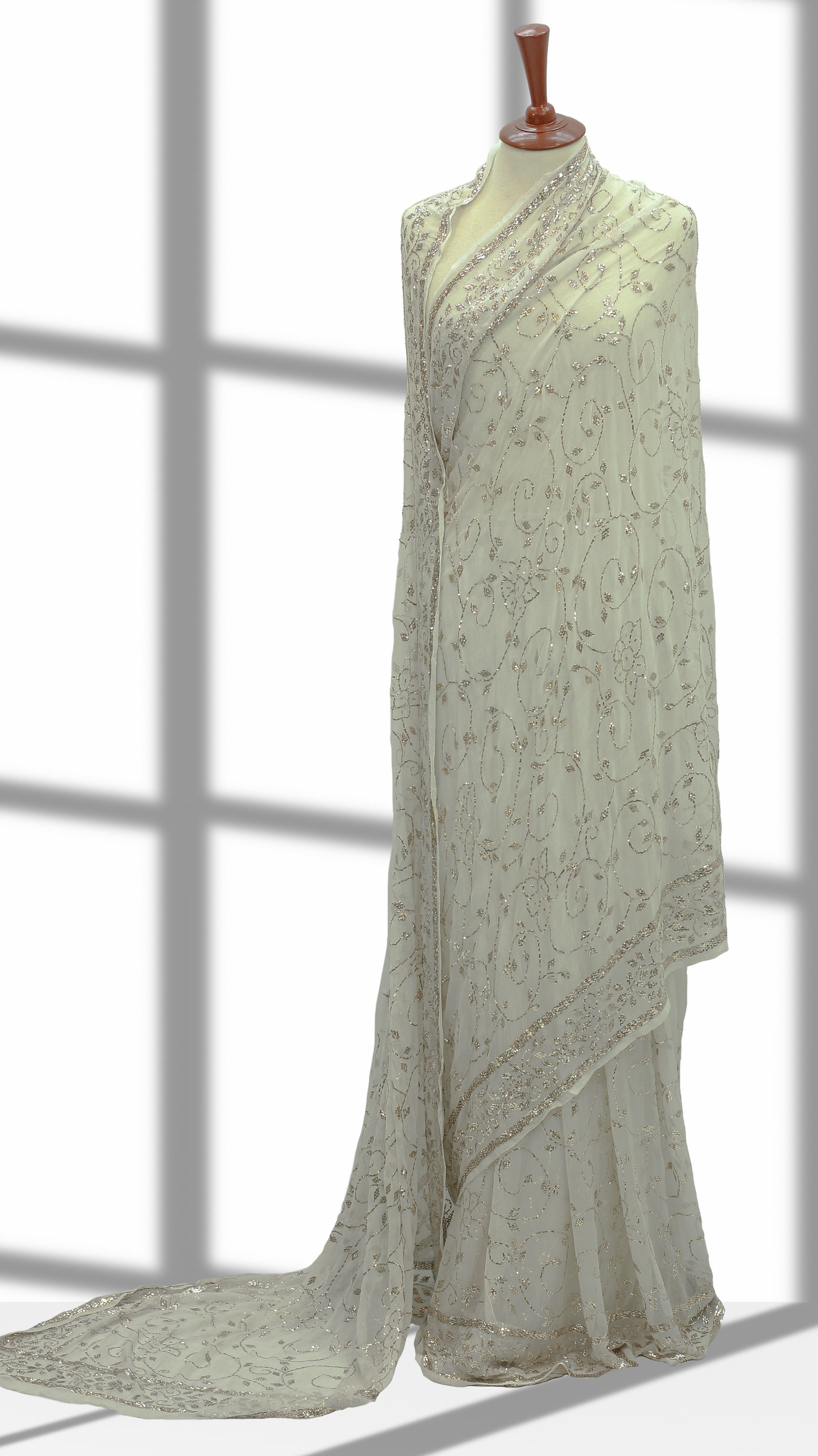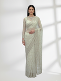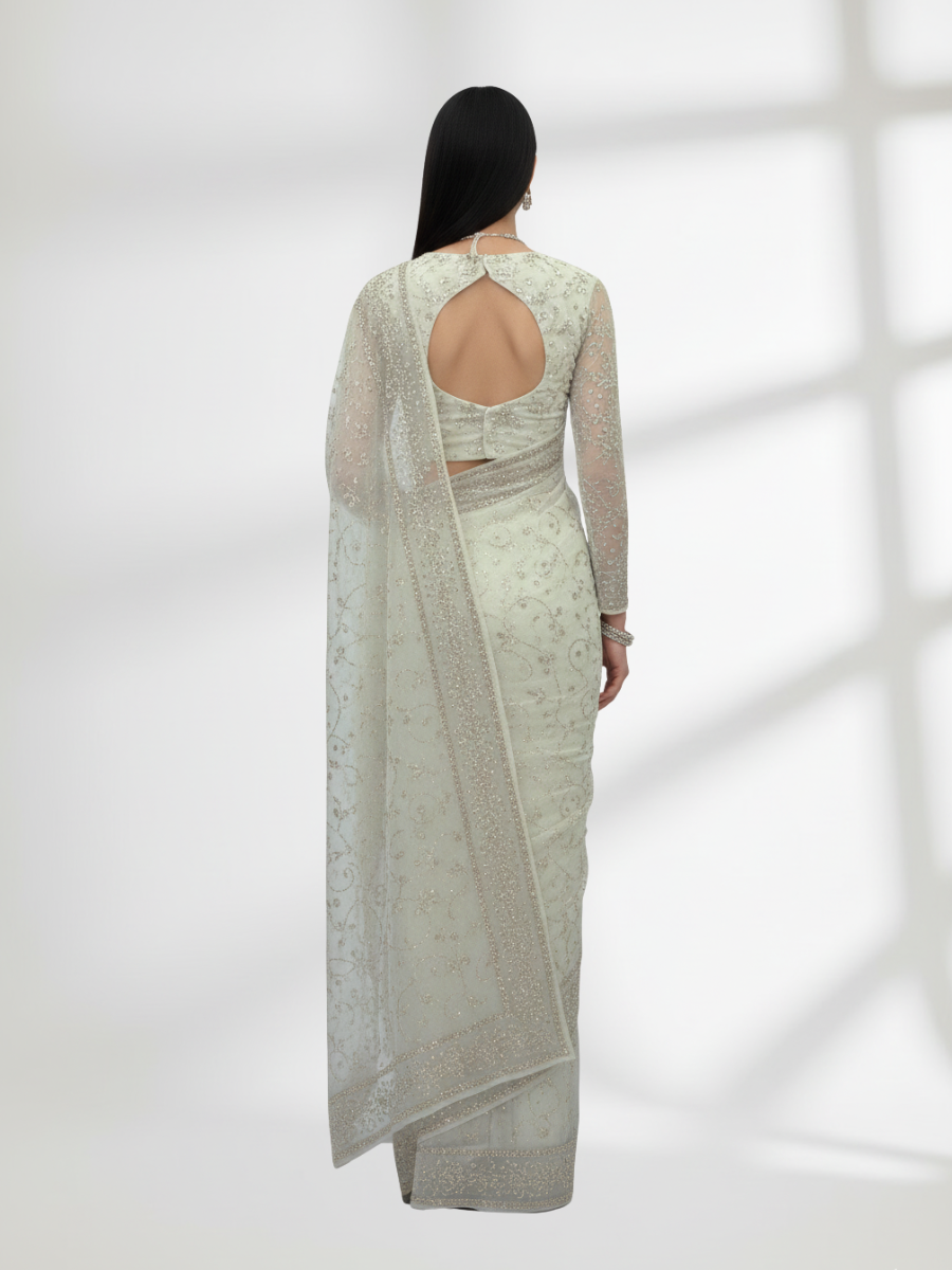 Rose Gold Mukesh Saree on Pure Crinkle Chiffon