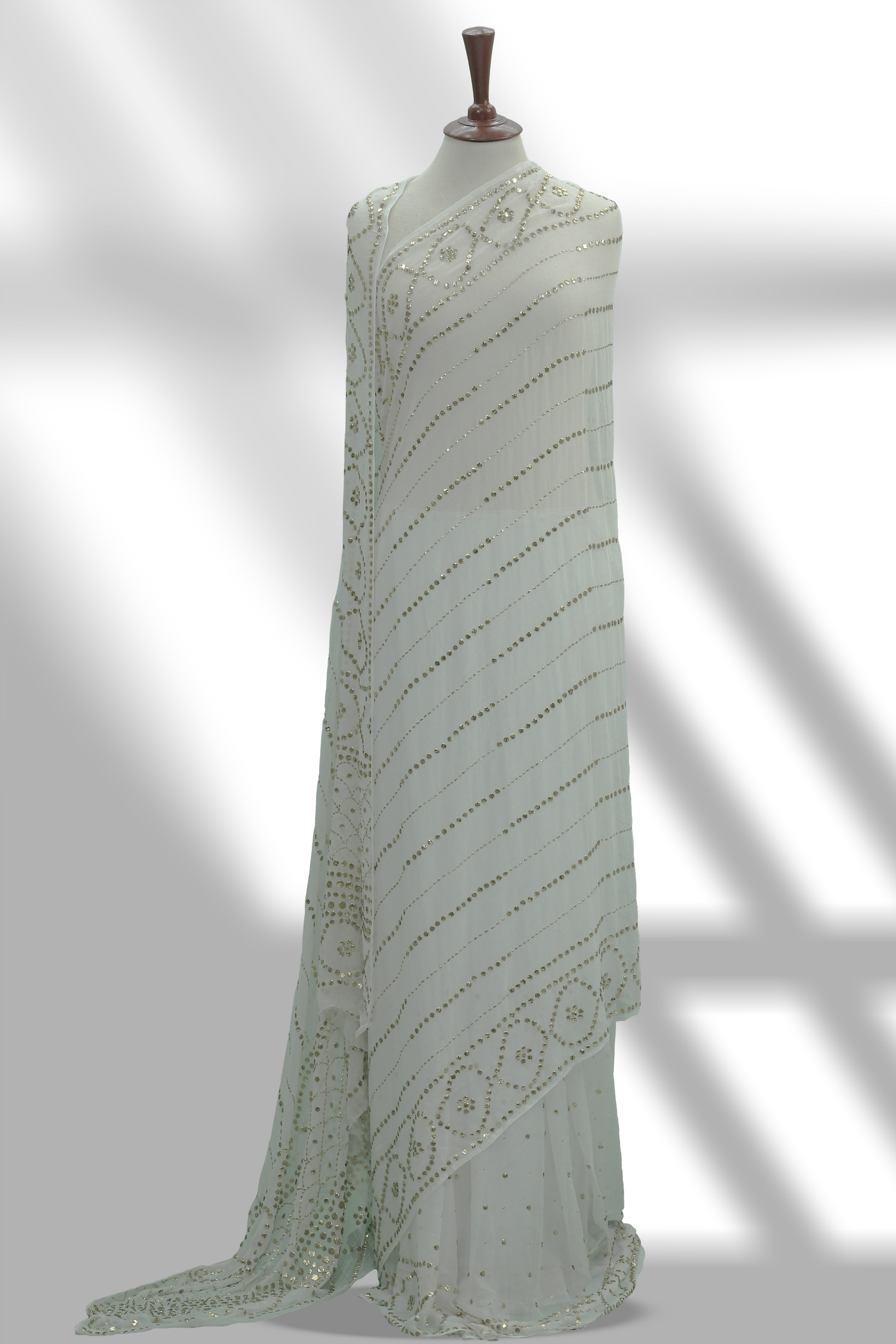 Gold Mukesh Saree on Pure Dull Crinkle Chiffon